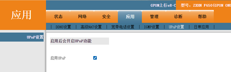 ▲ 可以看到, 根本就没有什么 UPnP 和 DMZ 的设置 (可恶的电信光猫).