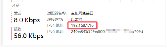 ▲ 在任务管理器里查找自己的网络的IPv4地址.